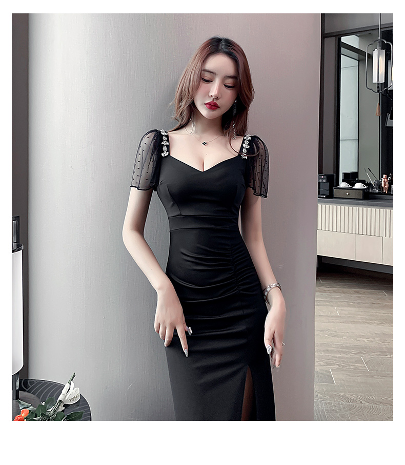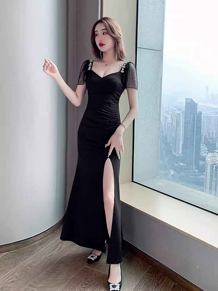 高級感氣質鑲鑽晚禮服性感歐歐連衣裙女佳麗開叉緊身包臀長裙子