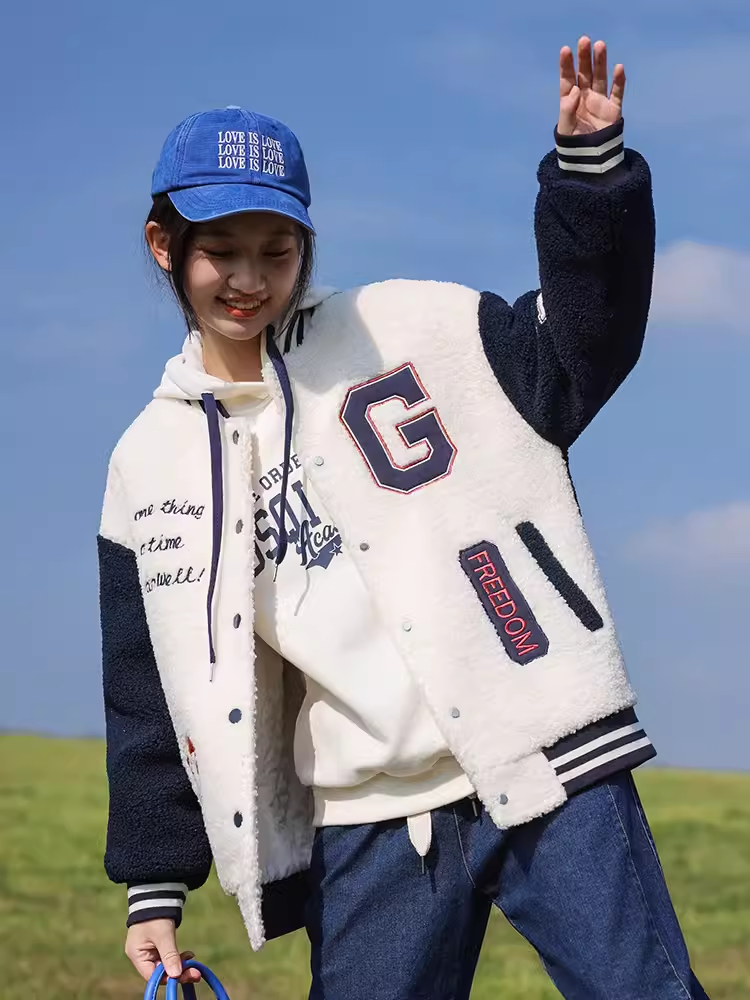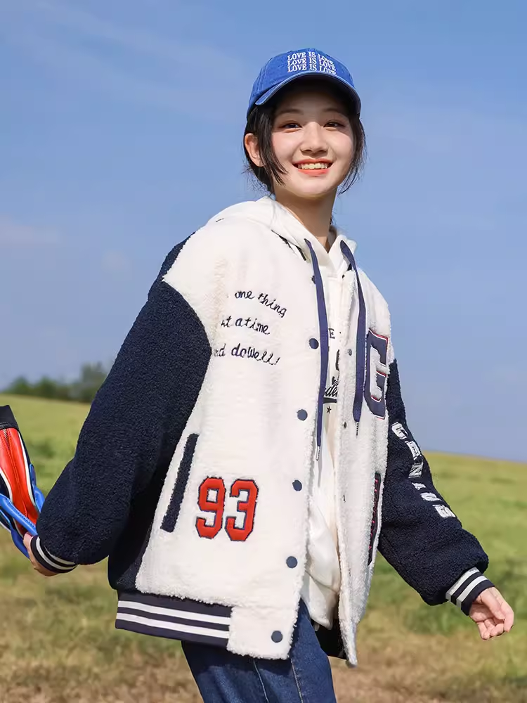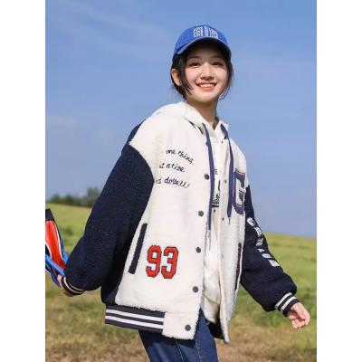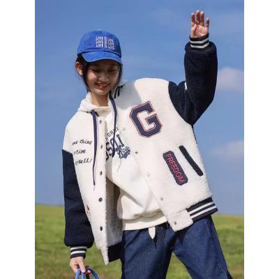 歐式棒球服外套2023新款國中學生夾棉加厚仿羊羔毛絨