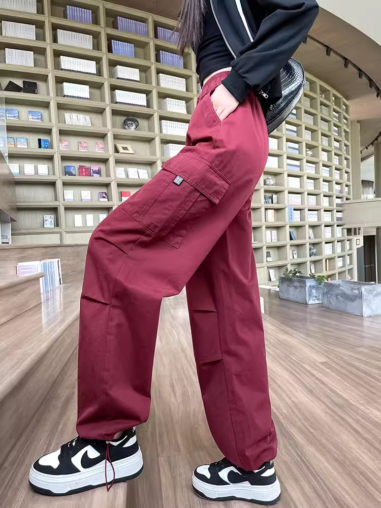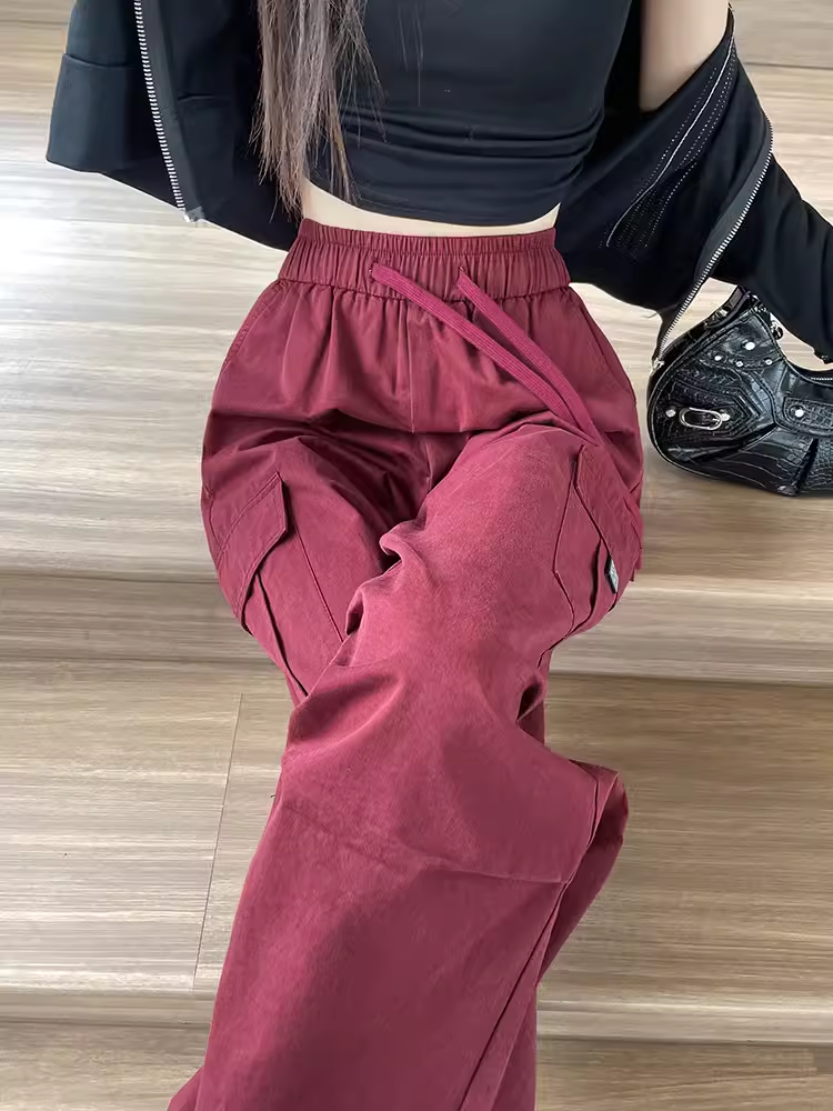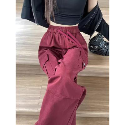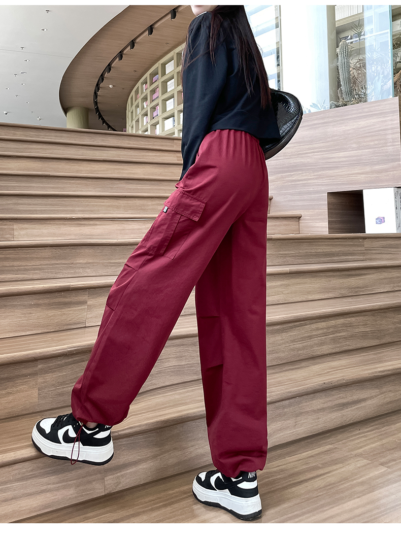 工裝褲女2023年秋季新款高腰直筒小個子闊腿運動休閒