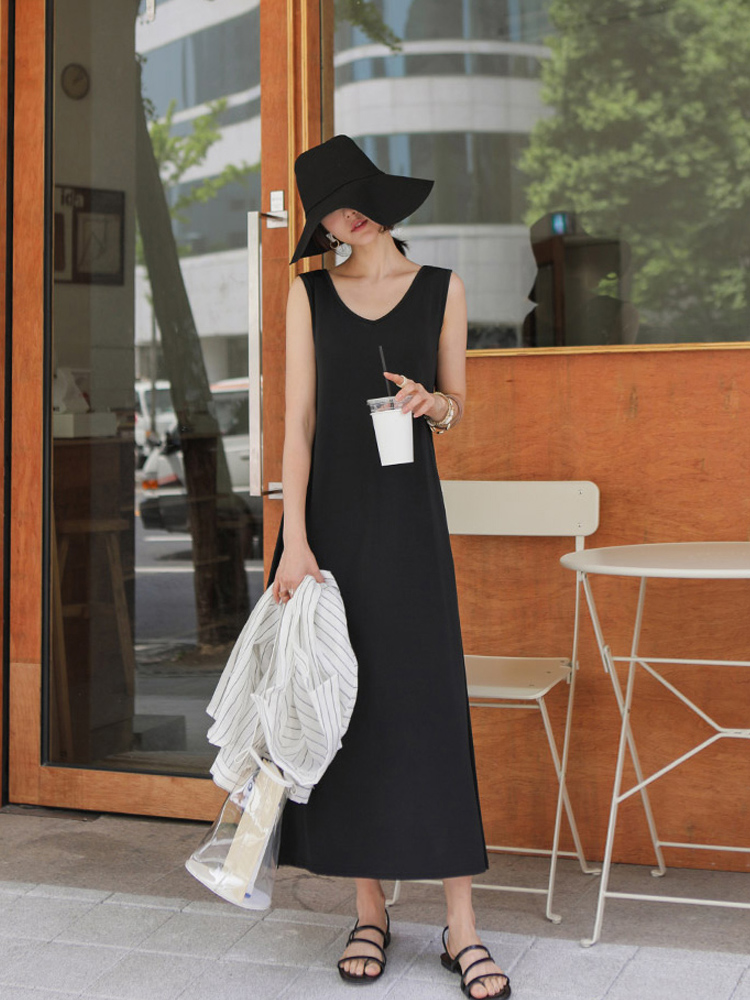 連衣裙吊帶裙歐美外穿無袖大擺裙寬鬆內搭打底背心長裙