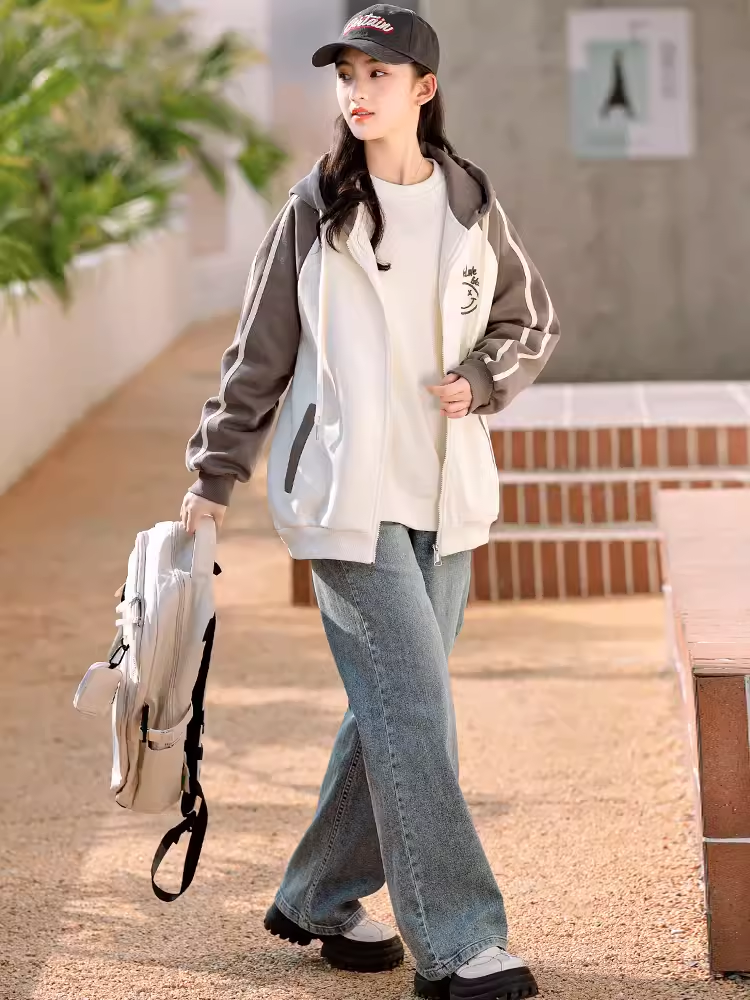 歐式棒球服外套2023新款國中學生夾棉加厚仿羊羔毛絨